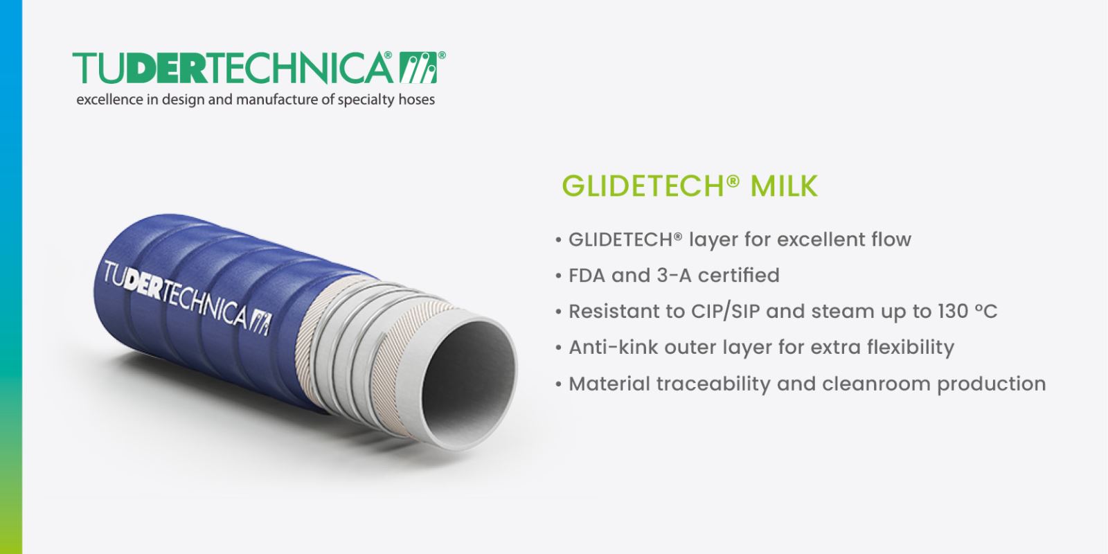With cleanroom production, rigid mandrel technology, and leading certifications, Tudertechnica offers hygienic, durable hose solutions for food, pharma, chemical, and petrochemical applications.